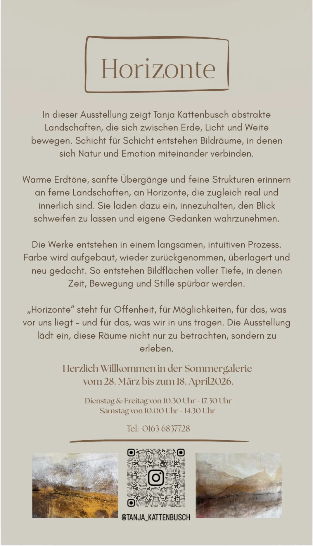 27. März-18. April 2026 Neue Ausstellung in der Sommergalerie in Aurich